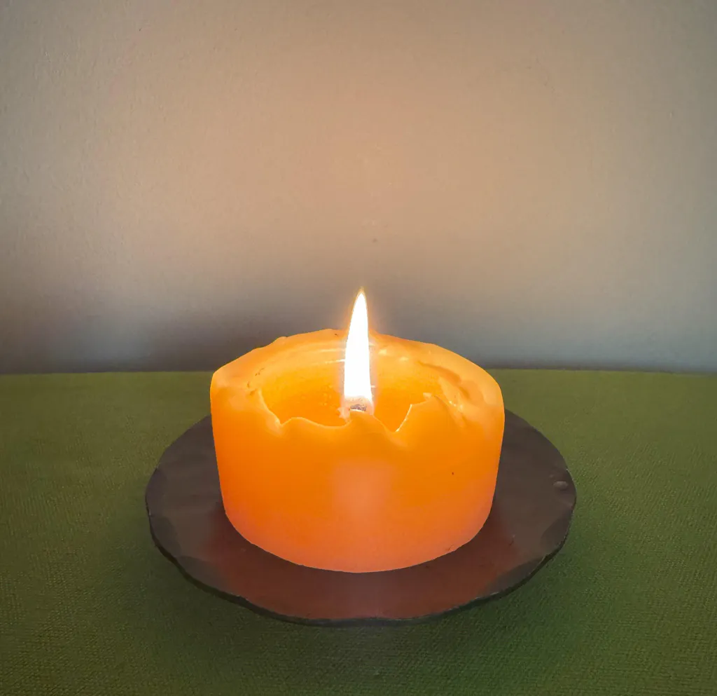 With some candle care, like molding the warm sides in toward the flame, there is no dripping, tunneling, or uneven burning. The scent is very gentle. I have my pillar candle stand on BLUECORN's forged pillar base.