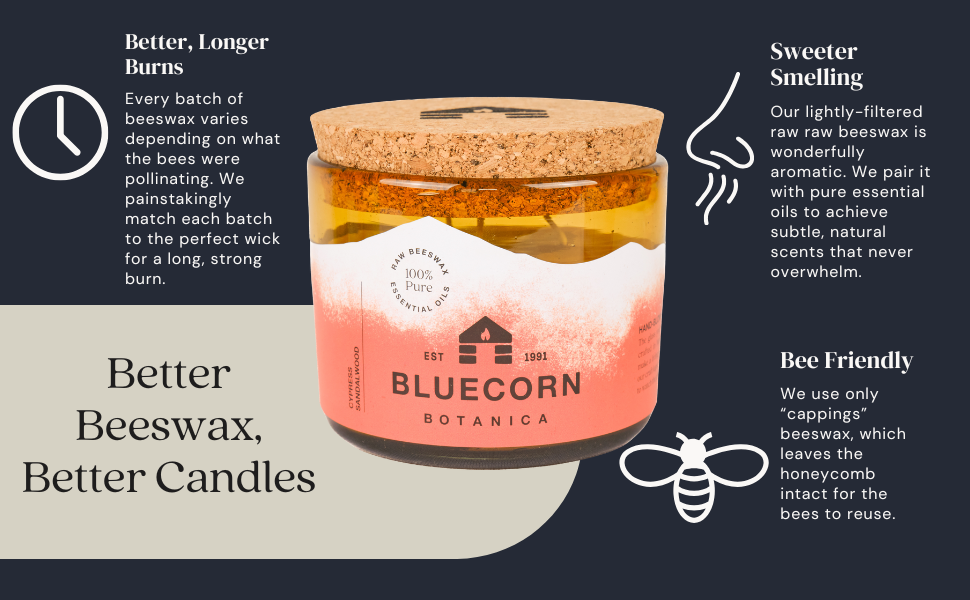Our Botanica beeswax jar candles are a clean, simple blend of raw beeswax and pure essential oils - nothing more. The large, 22oz 3-wick candle, is a visually striking centerpiece and will produce a stronger hot throw (scent strength while burning) because of the larger burn pool. The smaller, 8oz single wick candle, is great for spreading the light (and scent) throughout a space and of course, for strategically combining with other Botanica scents.