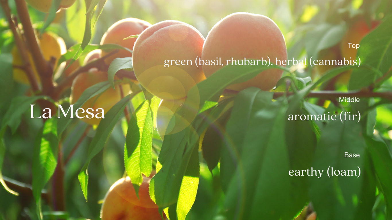 It is a bright and lively fragrance that hums with top notes of sweet, spicy basil, fresh citrusy rhubarb and green, floral cannabis. Herbaceous basil and rich, resinous fir needle create a soothing aromatic core. The unmistakable aroma of fresh soil grounds this fragrance with raw, authentic earthy base notes. La Mesa is the very definition of a fresh, clean scent that, quite literally, will brighten your day.
