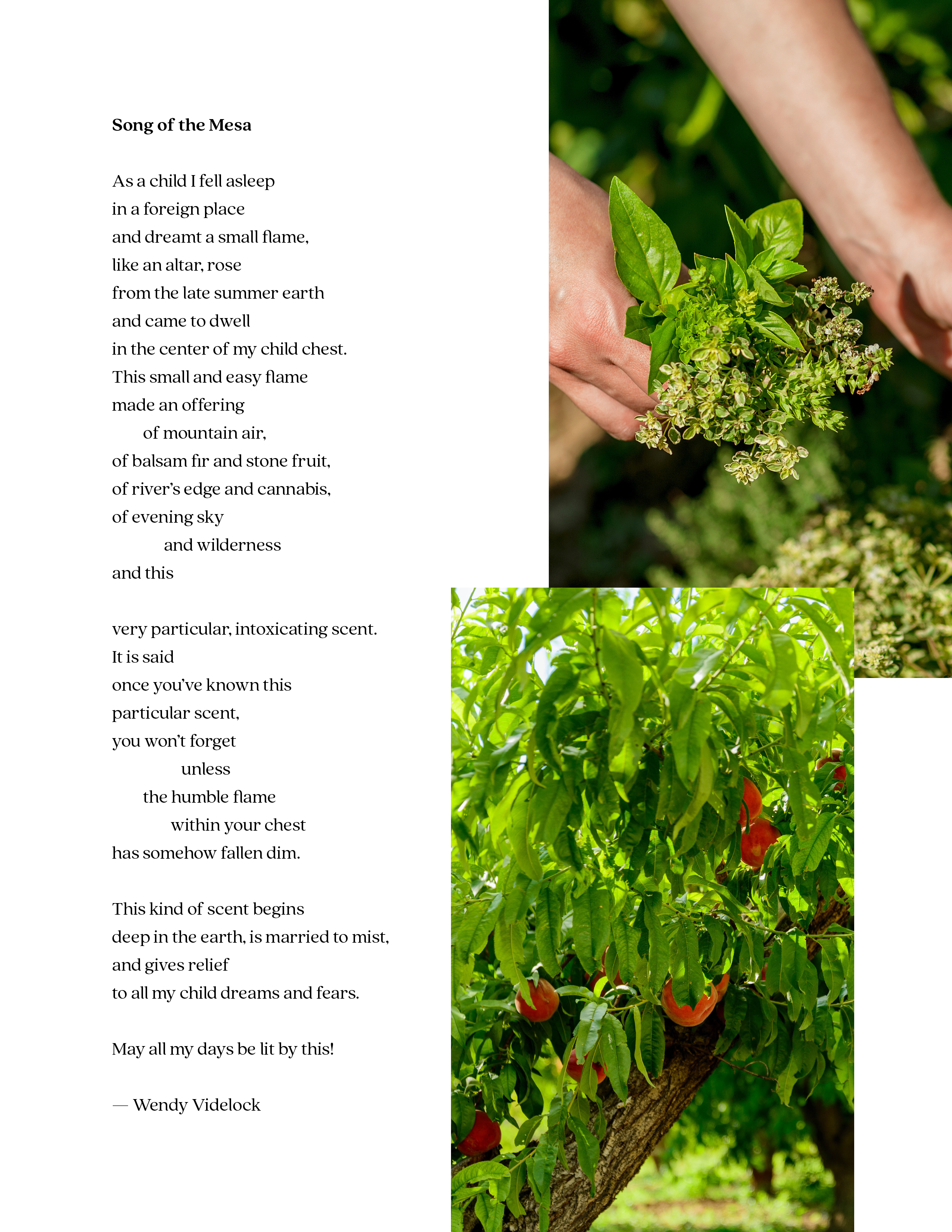 The North Fork Valley of Colorado is nestled sweetly beneath the majestic West Elk Mountains. Its mesas and rich alluvial plains are home to abundant fruit orchards, vineyards, veggie farms, and fragrant marijuana grows. Its inhabitants are a hearty, vibrant cast of creatives who celebrate these earthly gifts with song and dance and prayer. La Mesa is a fragrance inspired by these vital lands and the folks that tend them.