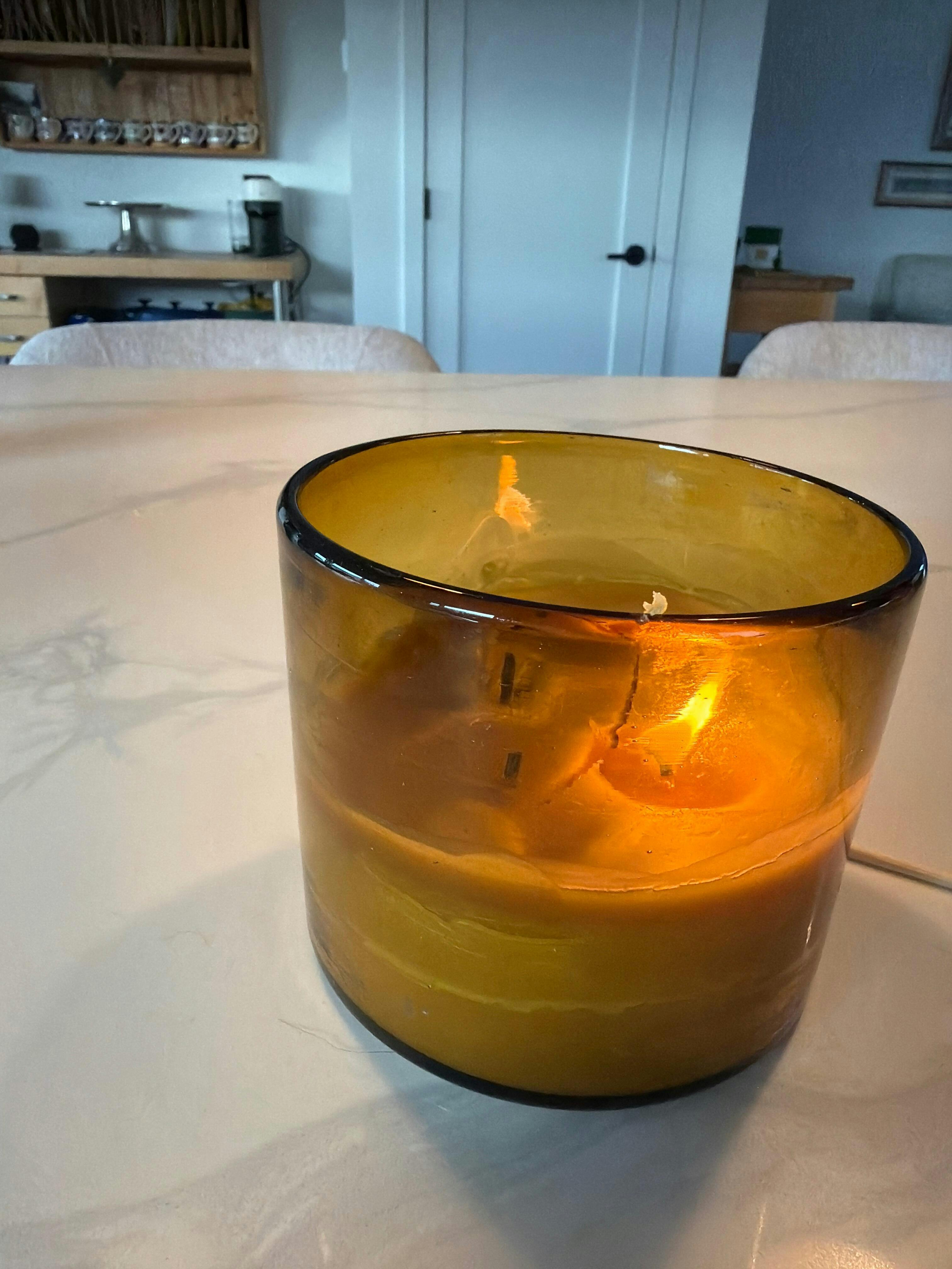 These refills are custom-engineered to fill our exclusive blown glass vessels. Hand-crafted by artisans in Mexico, this amber glassware is made from 100% post-consumer recycled material, looks like molten honey, and reveals the maker's hand in every bubble and curve. These candles really are breathtakingly beautiful - something you are sure to hear from friends, family and party goers. Don't have the glass yet? Never fear, you can find the starter listing here.