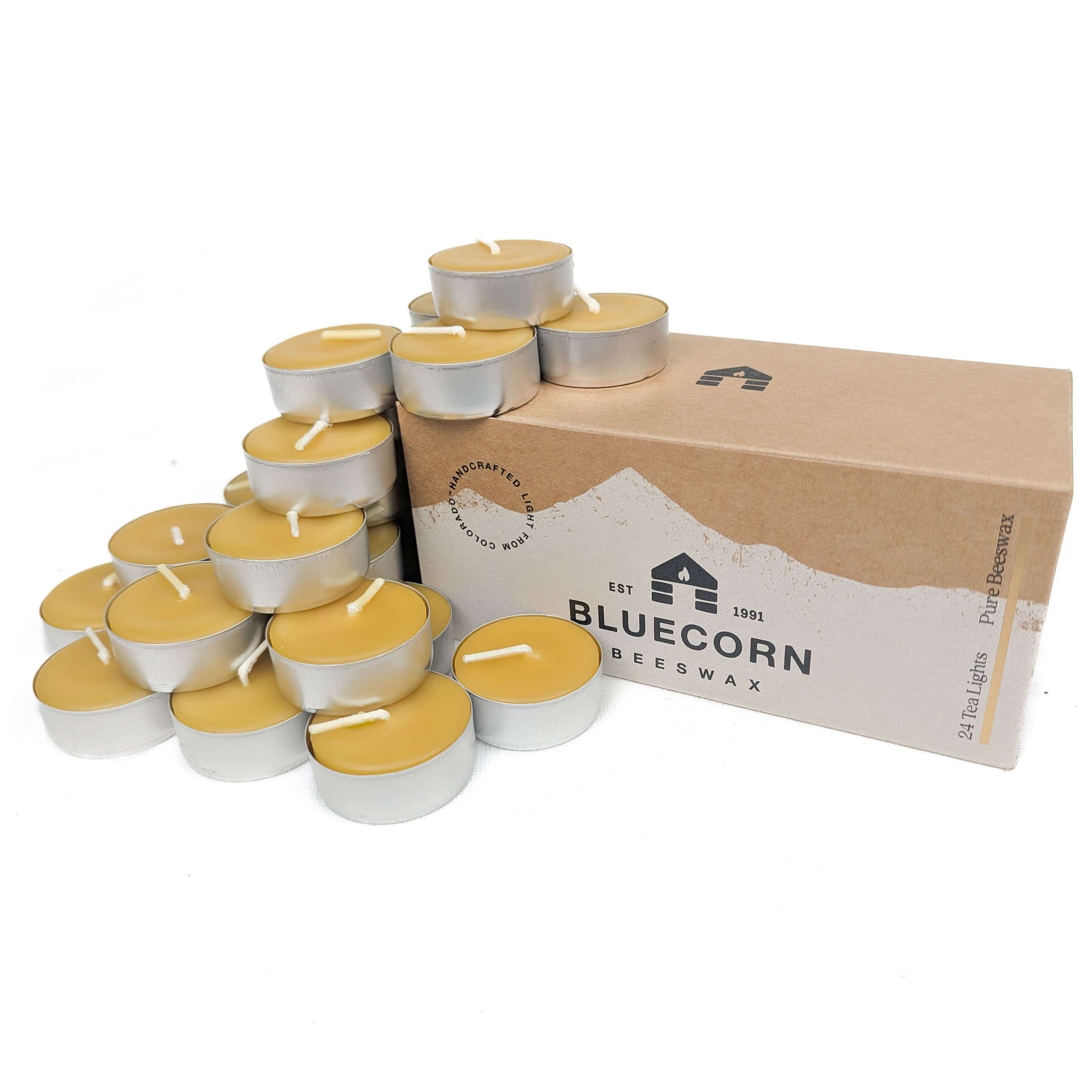 Our clean-burning, non-toxic beeswax tea lights are a beautiful way to bring warmth into any space. Use just one to accent a special photo, or use a dozen to fill a room with starlight. Regardless of how you use them, you can be certain that our tea lights will burn clean and bright for up to 5 hours. And be sure to check out our recycled glass tea light holders below.